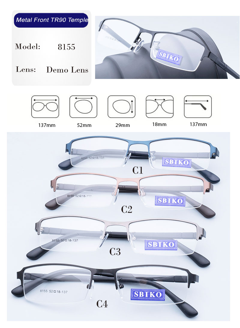Customized fashionable half frame metal front tr90 temple optical frames
